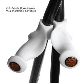 Albuestok har en bred underarmsstøtte og kan leveres med universal eller anatomiske håndgreb med indbygget refleks. Albuestok har en 25 mm stærk rørkonstruktion og kan højdereguleres via clipssystem med gennemgående stålpind.