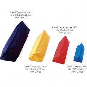 Lasal lejringspuder er fremstillet af materialer, der skaber god lejring og trykfordeling. Materialets sammensætning giver både taktile og proprioceptive input. Puderne er lufttætte og fyldt med små perler, hvilket sikrer, at lejringen holdes, og puderne ikke ændrer facon. Yderbetrækket er 100 % Öko-Tex certificeret bomuld.