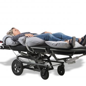En liggevogn, som gør brugeren både mobil og social. Vognen kan bruges til både hvile, afslapning, stabilisering, støtte og til transport indendørs.