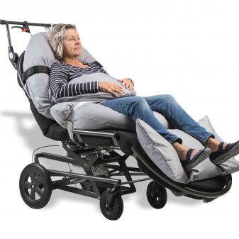 Den mobile hvile- og aflastningsvogn skaber mange lejringsmuligheder og er let at indstille. Det gør, at brugeren kan deltage i flere aktiviteter, uanset om personen har behov for at være liggende eller siddende. Se de lejringspuder fra Lasal og Cobi Rehab, som vi anbefaler til optimering af lejringen.